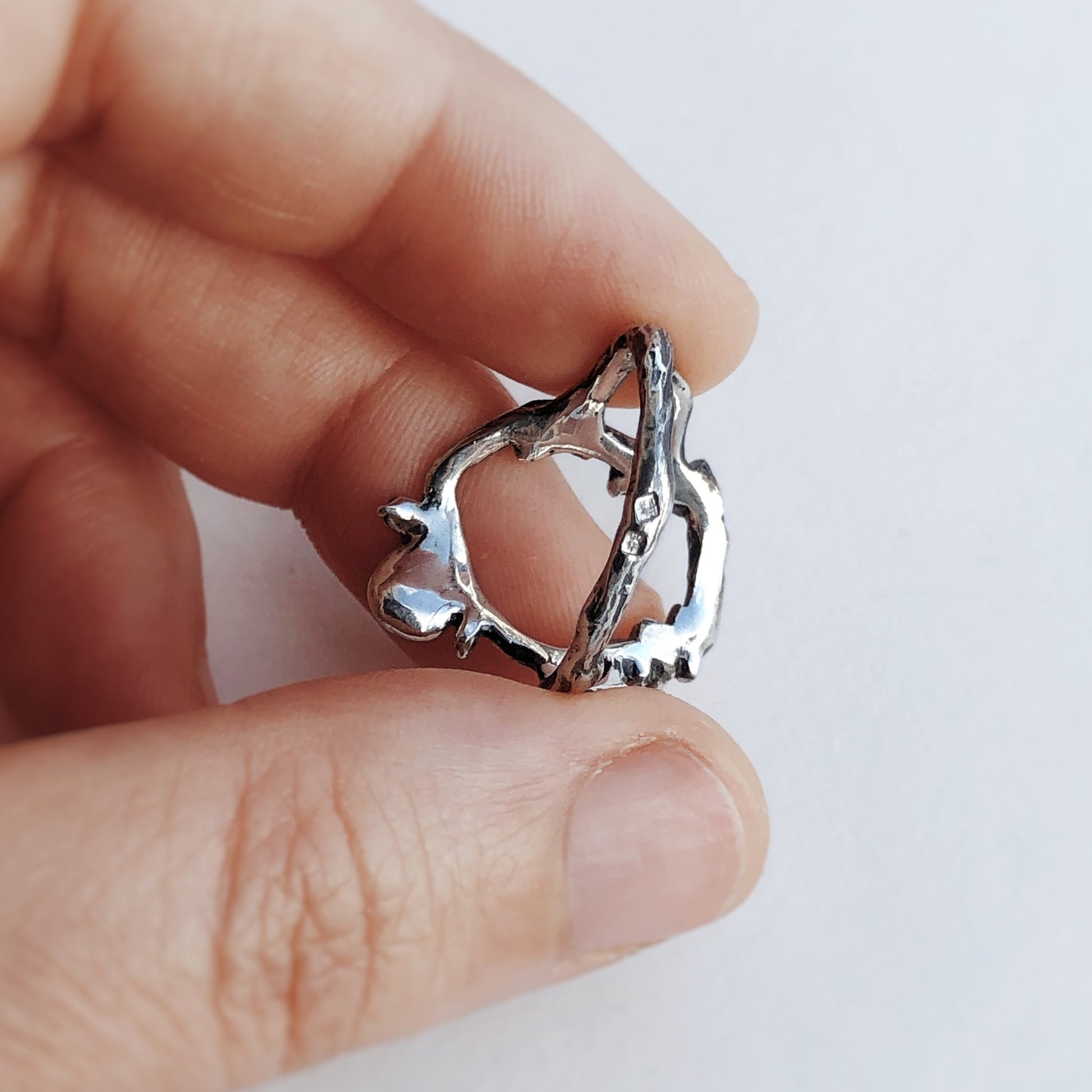 Sculpted in wax and cast in solid silver, then carefully polished and refined by hand.
